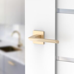 Klamka jest dostępna w unikatowym, złotym kolorze Mosiądz Błyszczący. To piękny, połyskujący kolor, który zawsze wygląda modnie i z klasą. Kolor jest odpowiedzią na potrzeby najbardziej wymagających klientów którzy szukają oryginalnych dodatków przy aranżacji wnętrz swoich domów i mieszkań.