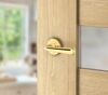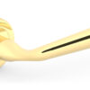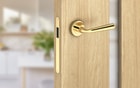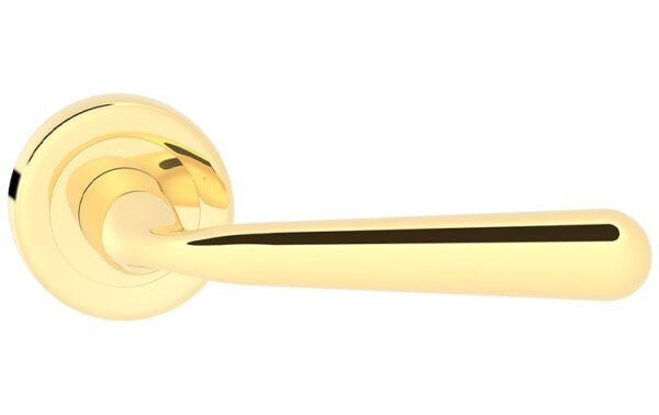 Klamka Laura R to elegancki i nowoczesny element wykończenia wnętrz, łączący stylowy design z funkcjonalnością. Jej ergonomiczny, opływowy kształt zapewnia wygodę użytkowania, a połysk mosiądz, doskonale komponuje się z nowoczesnymi aranżacjami, dodając im wyrazistego charakteru.